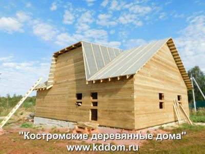 Сруб полутораэтажного дома из бруса